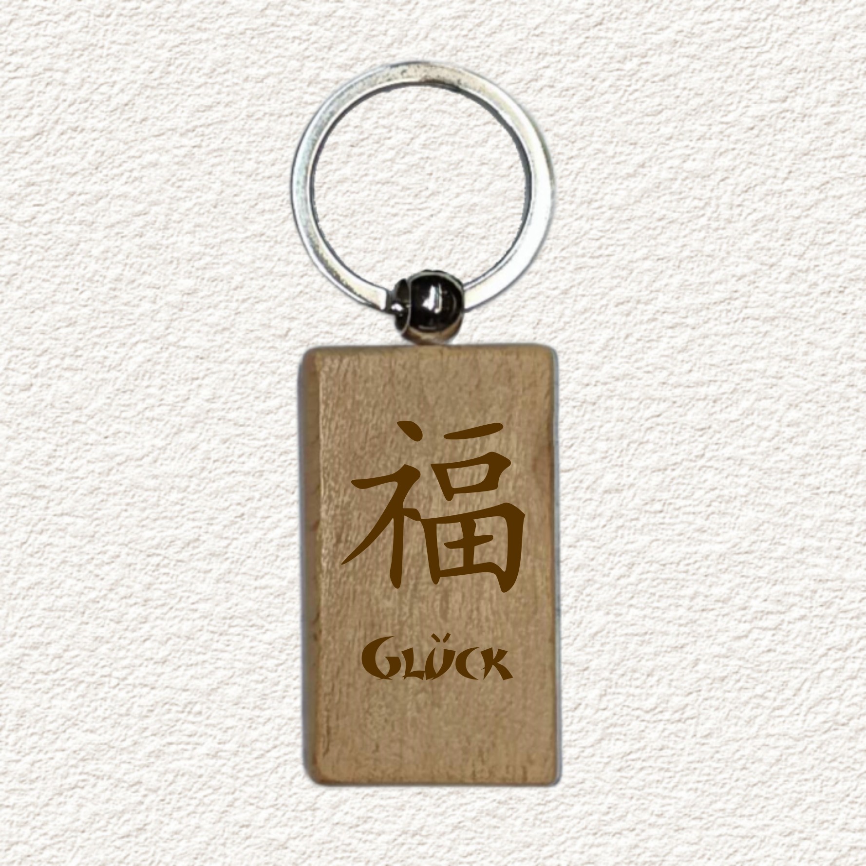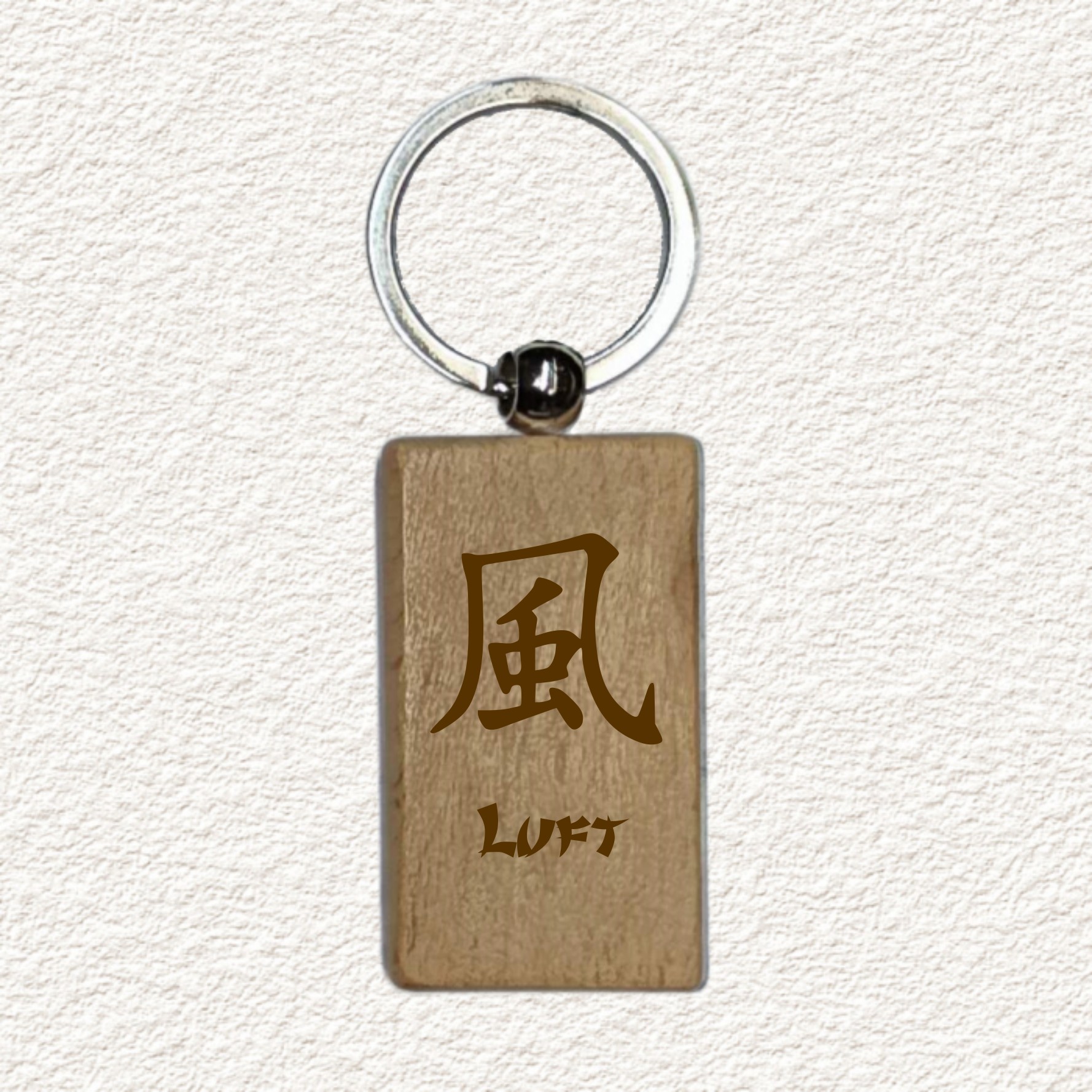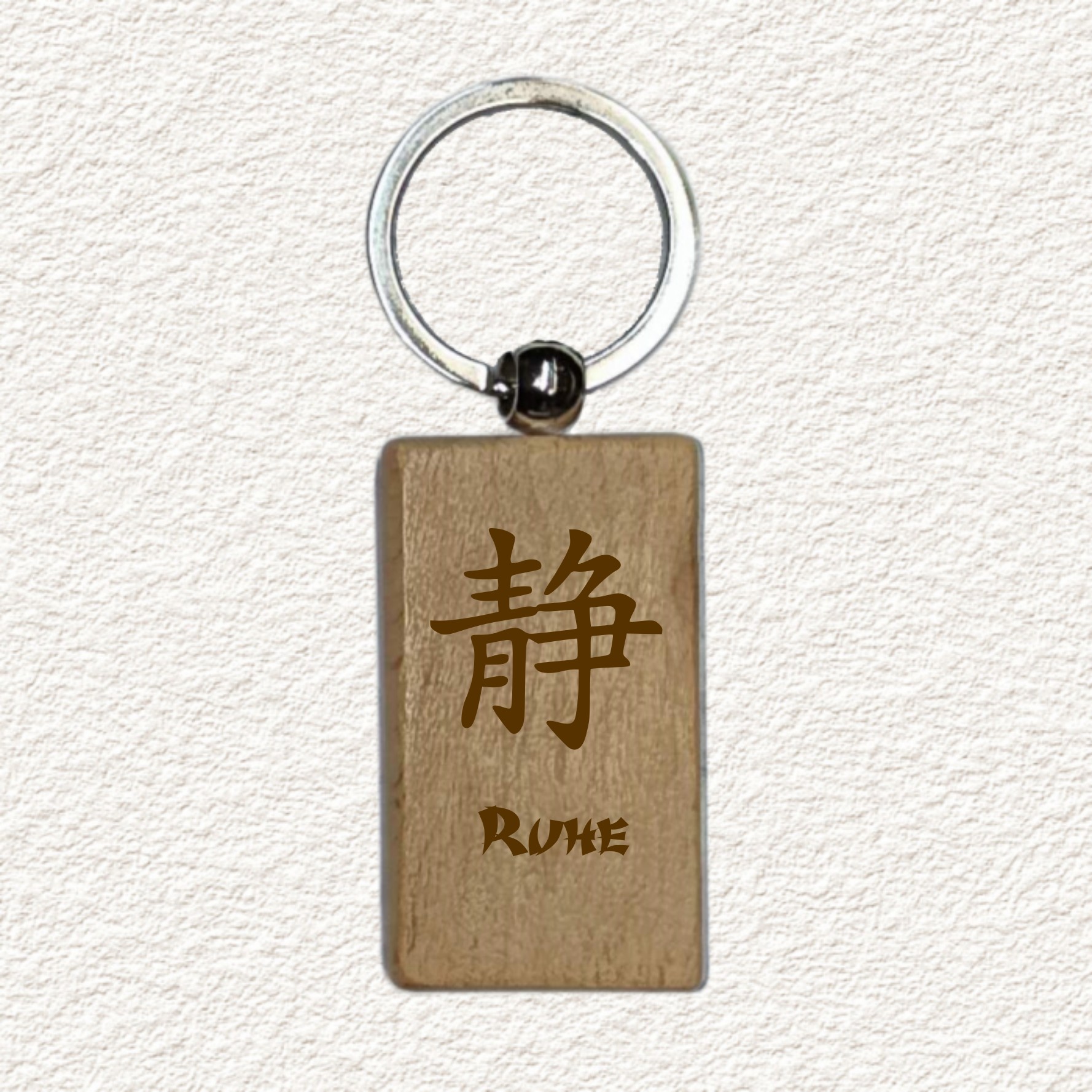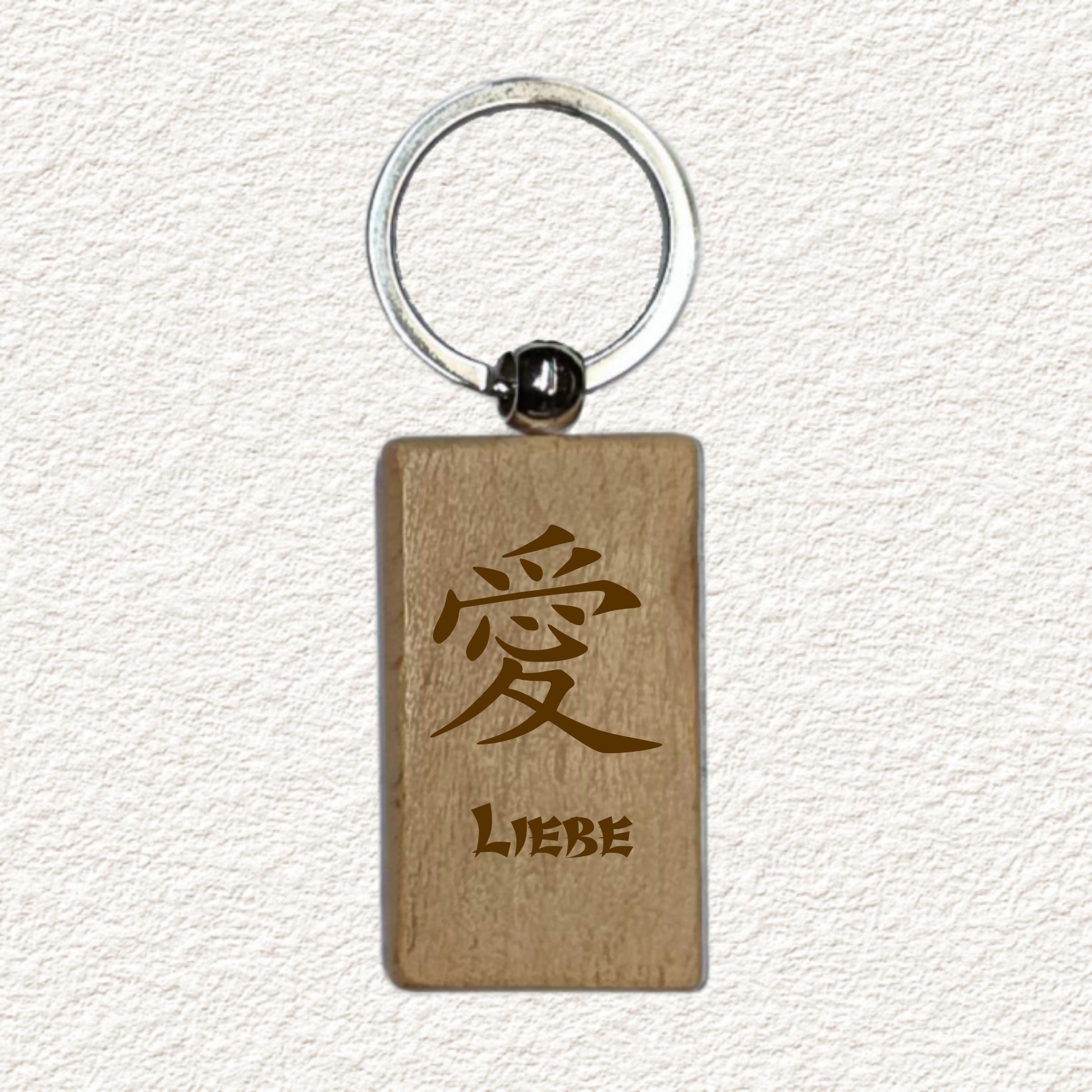 Ihr persönliches chinesisches Schriftzeichen als exklusive Lasergravur auf einem Holz-Schlüsselanhänger.