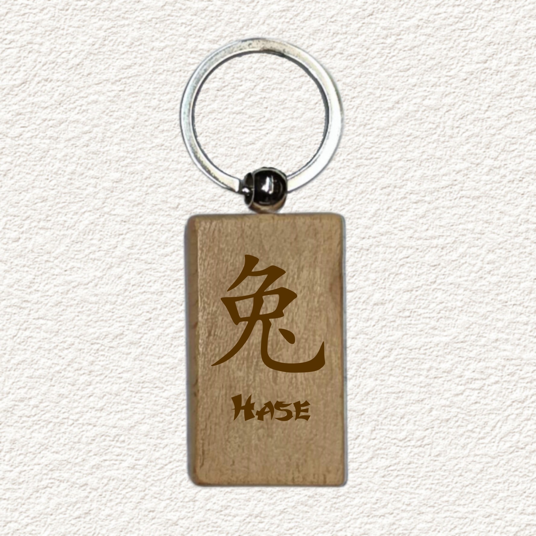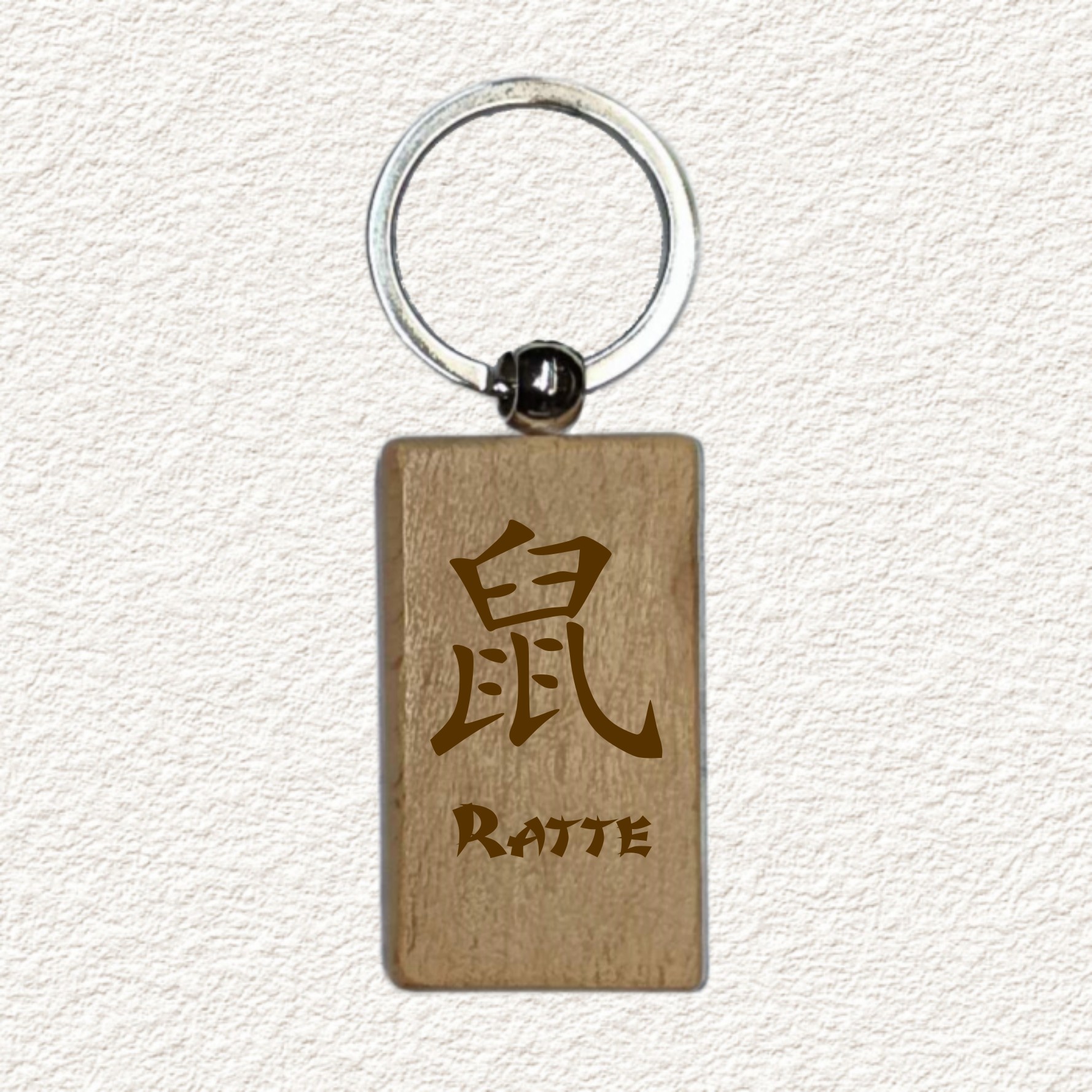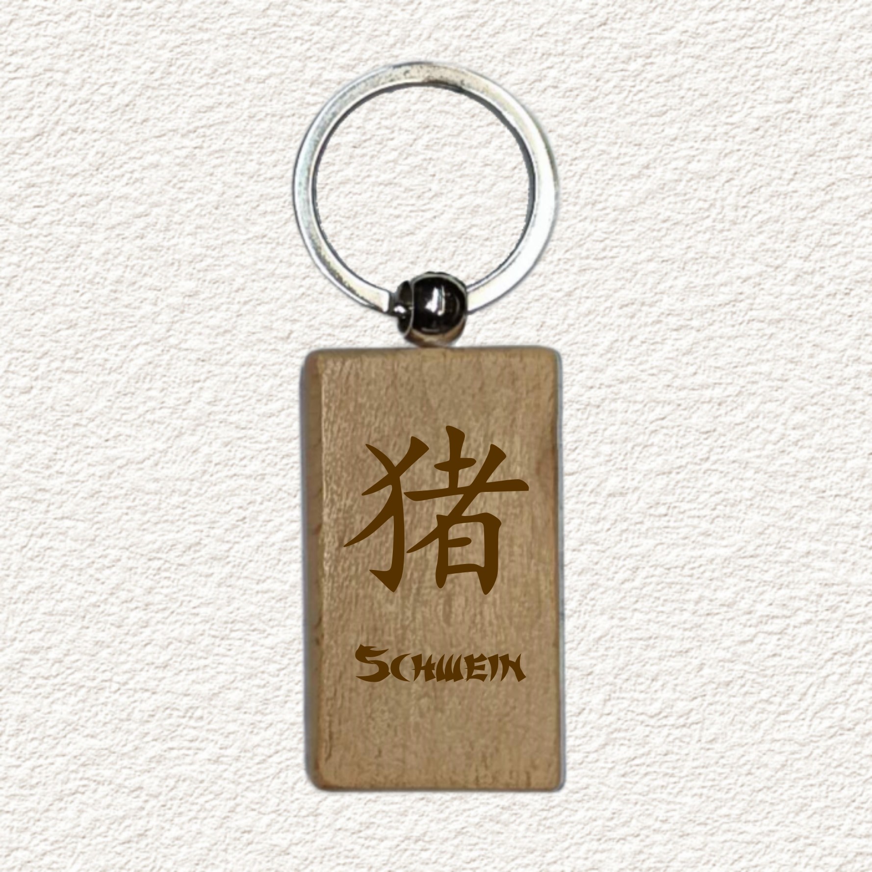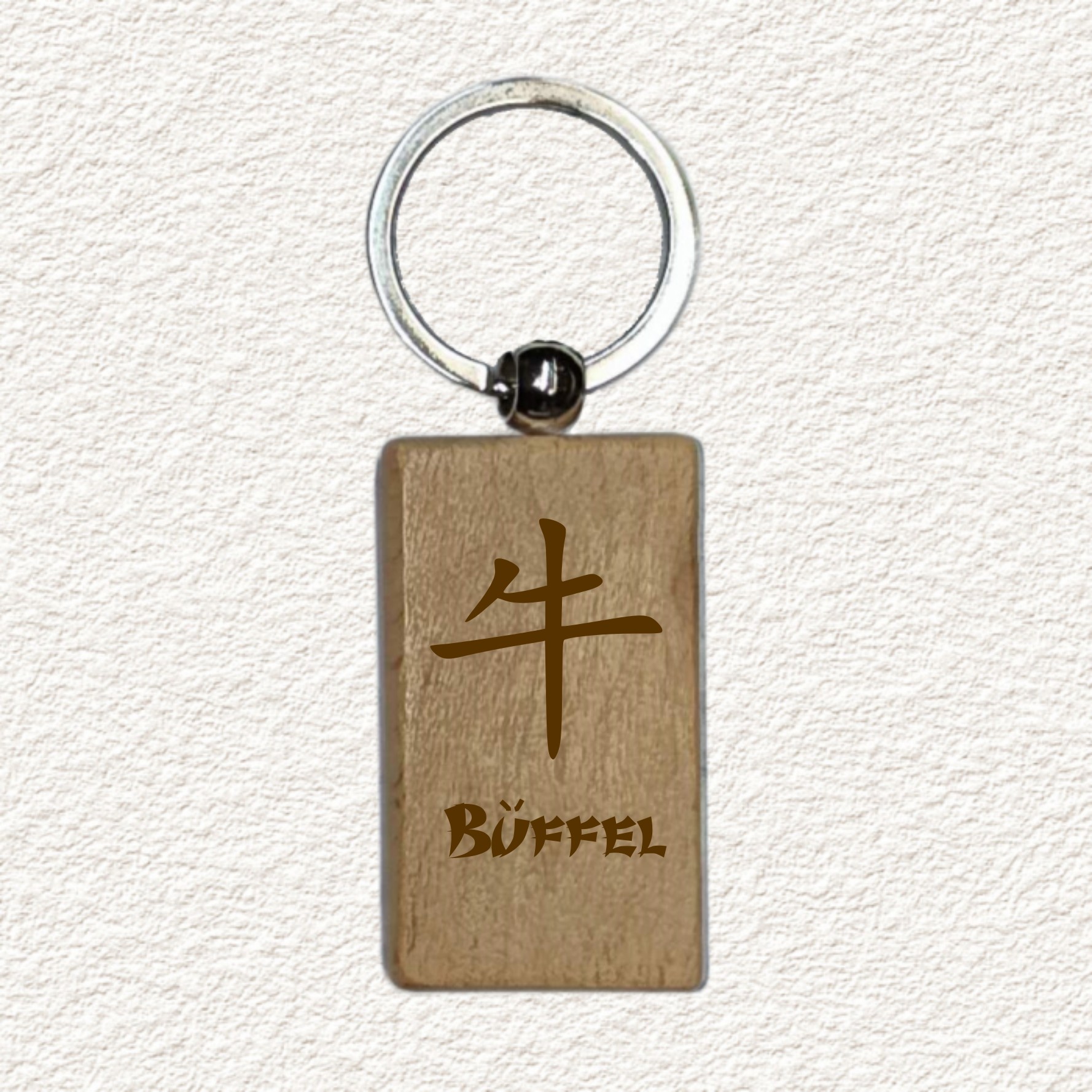 Ihr persönliches chinesisches Tierkreiszeichen als exklusive Lasergravur auf einem Holz-Schlüsselanhänger.