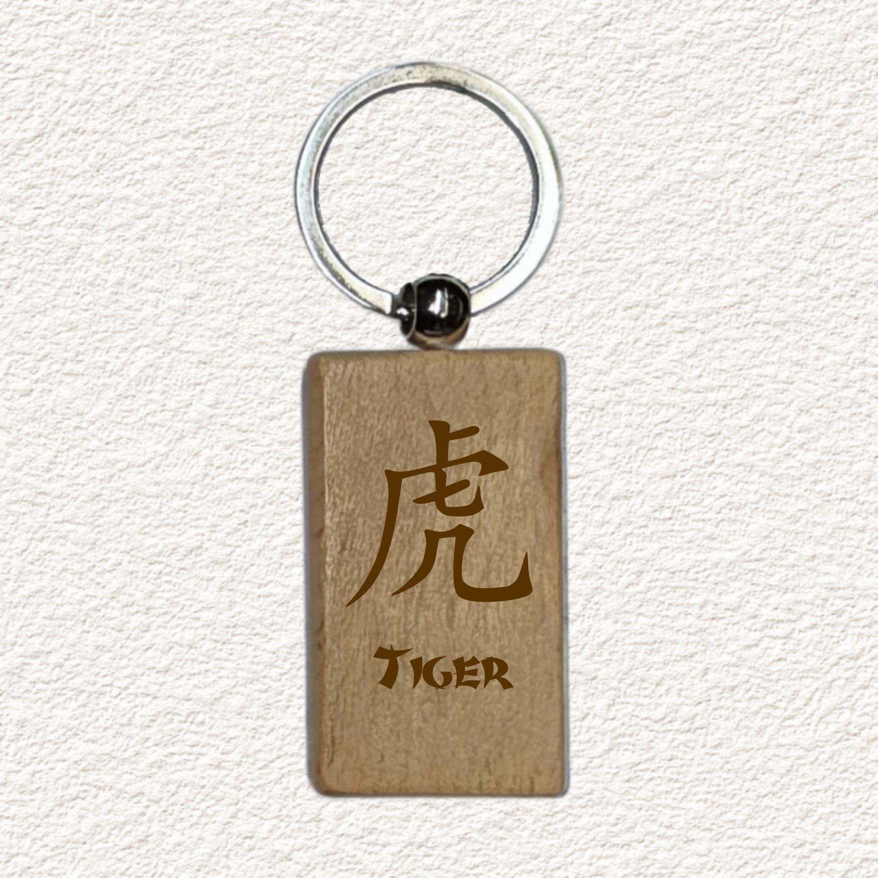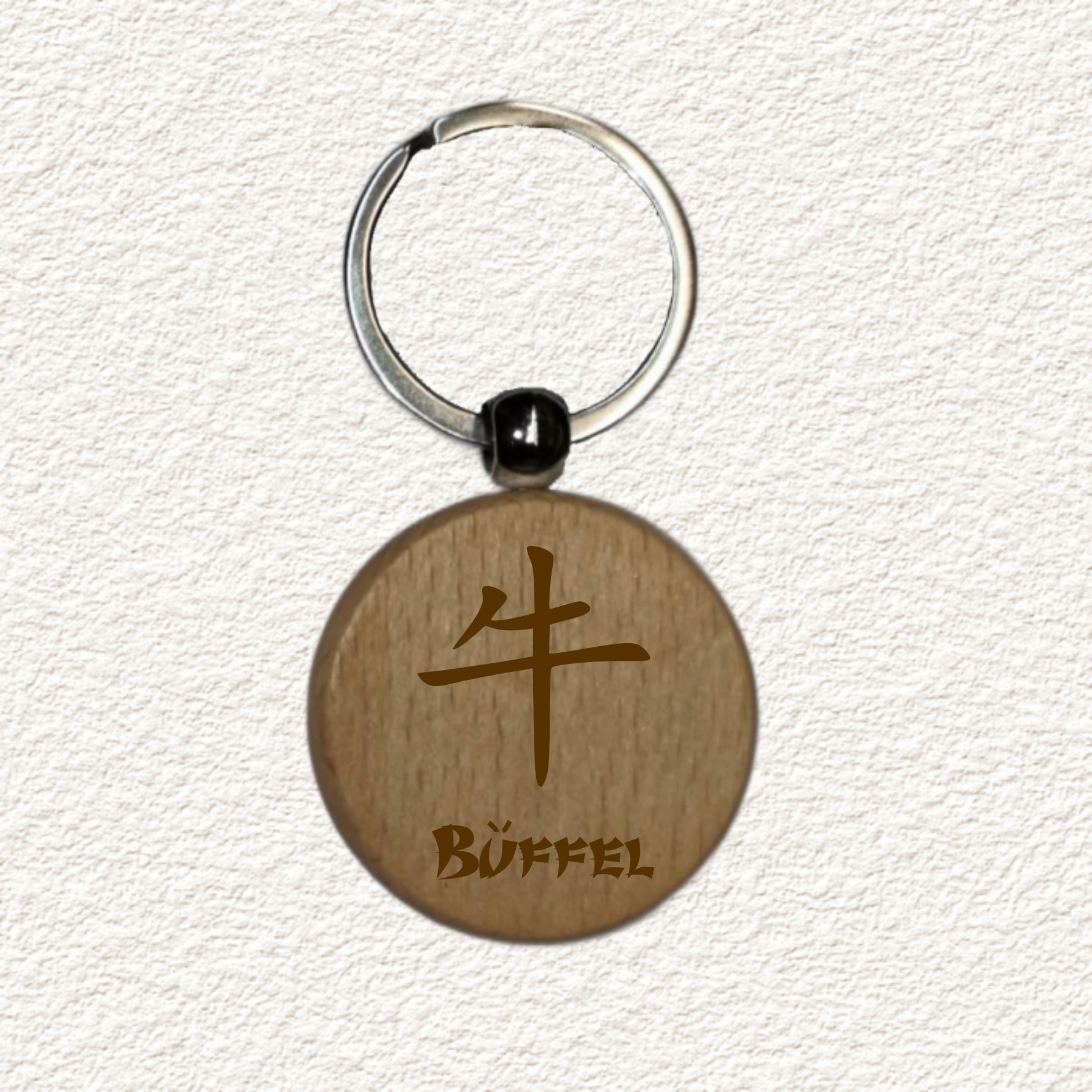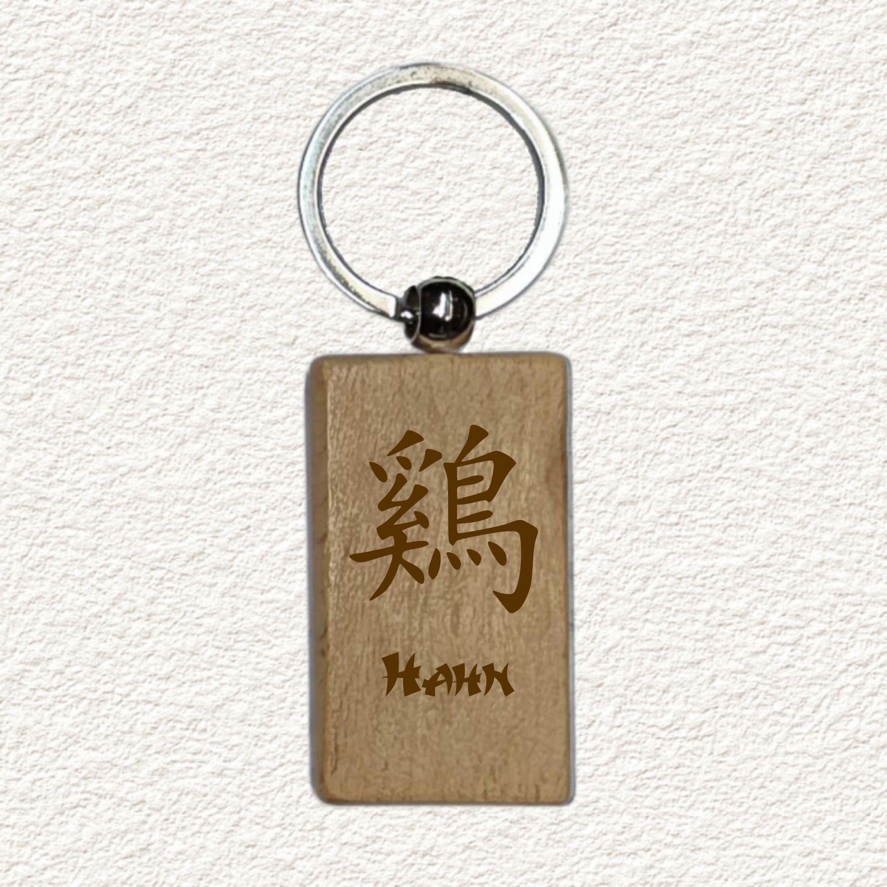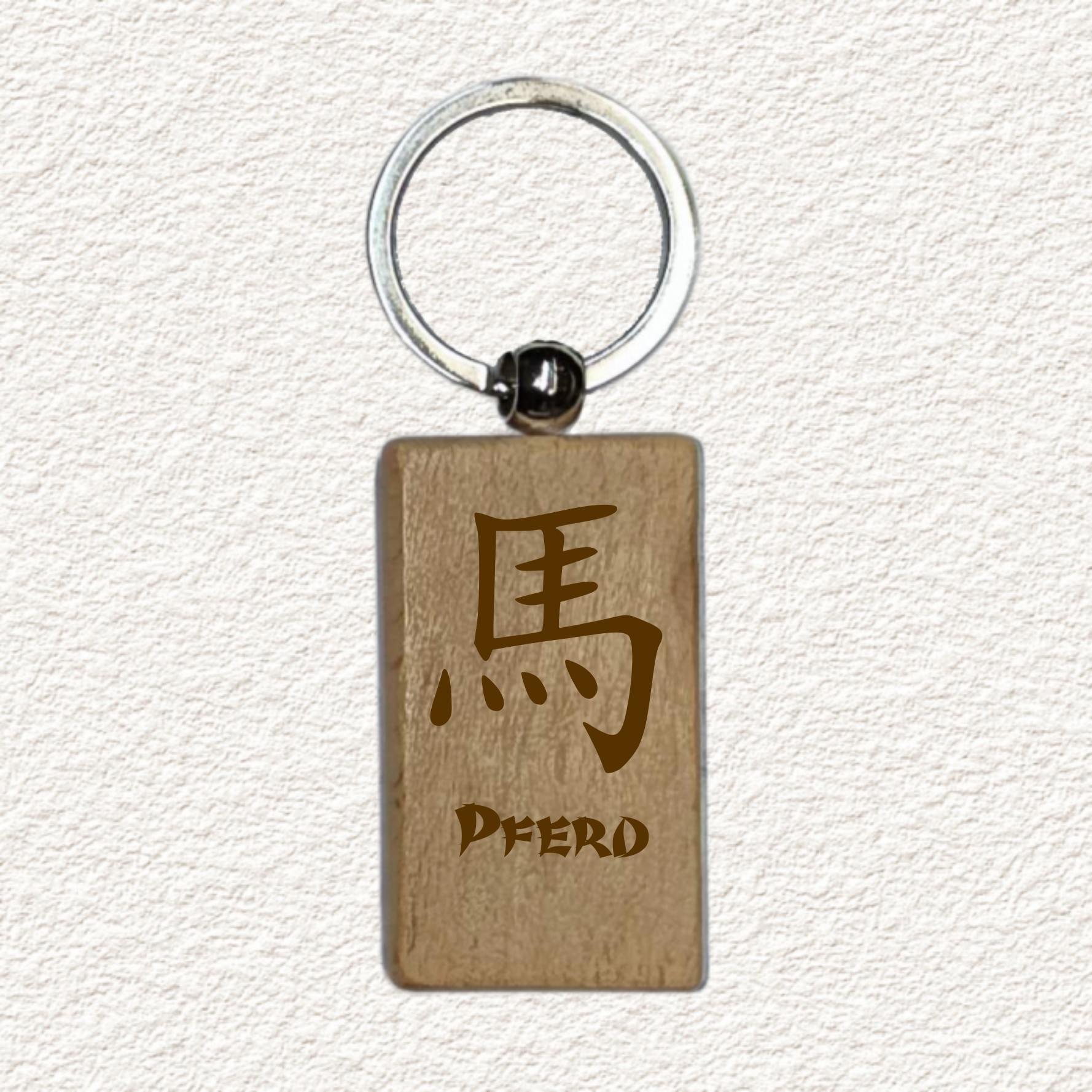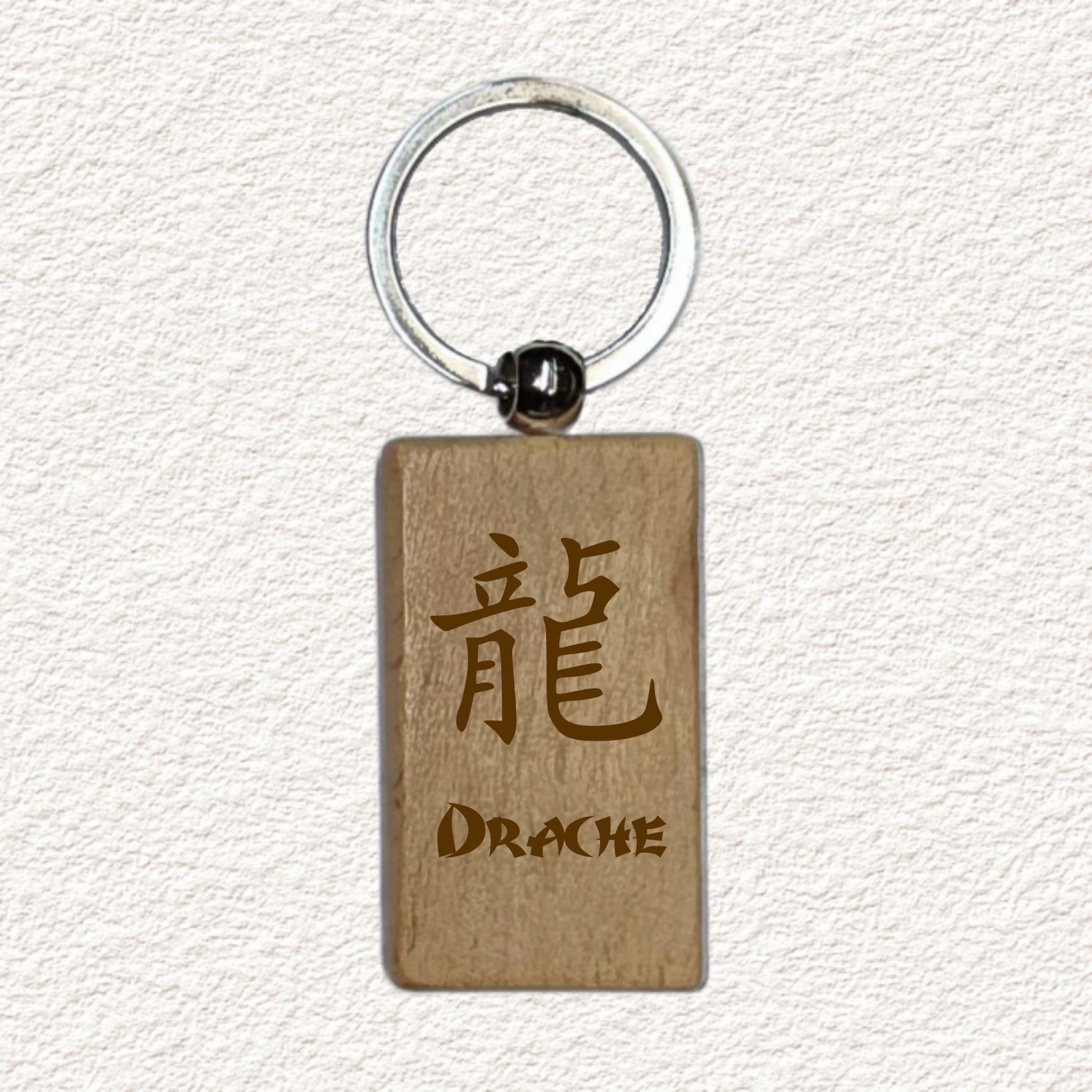 Ihr persönliches chinesisches Tierkreiszeichen als exklusive Lasergravur auf einem Holz-Schlüsselanhänger.